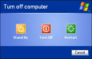 در مایکروسافت ویندوز یک رایانه یا سرور با کلیک بر روی دکمه خاموش از منوی استارت، خاموش میشود. که در آن منو، خاموش شدن، راهاندازی مجدد یا نگه داشتن در حالت استندبای موجود است. همچنین میتوان از طریق فرمان در شل ویندوز دستور خاموش شدن به رایانه را وارد کنیم، برای این کار، shutdown.exe یک دستور برای خاموش کردن میباشد.