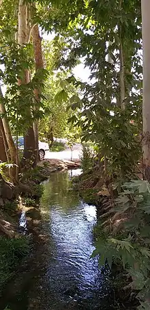 عبور قنات جهانی حسن آباد از این باغ باعث ایجاد فضای دلشنین و آب و هوای مطبوع شده است. قنات حسن آباد پس از وارد شدن به باغ دو قسمت می شود که با عبور از جلو عمارت اصلی باغ و عمارت مقابل آب دوباره به هم رسیده و از باغ خارج میشود. لازم به ذکر است که قنات حسنآباد قناتی است که شهرستان مهریز در استان یزد قرار دارد. این قنات که مربوط به دوره میانی اسلامی (قرن هشتم) است، در شانزدهم بهمن ۱۳۸۹ به شماره ثبتی ۲۹۹۷۶ در فهرست آثار ملی ایران به ثبت رسیده است.[۱]