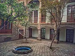 در این بنا عناصری همچون سردر ورودی، هشتی، دالان، حیاط مرکزی، ایوان ستوندار، و اتاقهای اطراف حیاط ساختار معماری بنا را شکل دادهاند. قسمت اصلی صحن مربوط به ستونهایی است که از زیر سقف پیش ایوان آغاز شده و به کف صحن میرسد، این ستونها باربر سقف پیش ایوان محسوب میشوند که سه قوس هلالی این ستونها را به هم مرتبط کرده و شکل زیبایی به وجود آوردهاست. روی این قوسهای هلالی دو کتیبه که دارای مضمون - لا حول و لا قوه الا به الله-است قرار گرفته.[2]