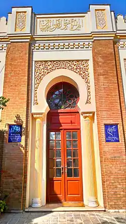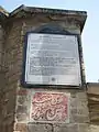 لوح نصب شده بر سردر خانهٔ پروفسور عدل که در آن مختصری از تاریخچهٔ ساختمان آمده است.