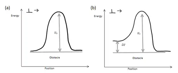 که انرژی مانع است؛ کار فراهم شده توسط تنش اعمالی و از انرژی حرارتی است که سبب میشود تا از مانع عبور کند. ثابت بولتزمن و دمای سیستم است.