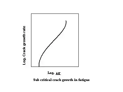 در این نمودار لگاریتمی-لگاریتمی، سرعت رشد ترک در برابر دامنه شدت تنش اعمالشده ترسیم میشود. به طور کلی یک محدوده شدت تنش آستانه وجود دارد که در زیر آن سرعت انتشار ترک ناچیز است. سه مرحله را می توان در این نمودار مشاهده کرد: