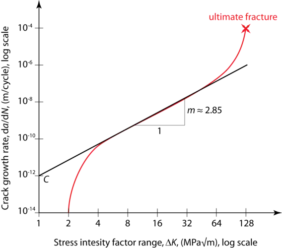 نرخ رشد ترک (da/dN) برای مواد به کار رفته در قطعات مختلف اهمیت قابل توجهی دارد. نمودارهایی برای بررسی این مشخصه وجود دارد. این نمودارها رابطهٔ نرخ رشد ترک را با ضریب تمرکز تنش (ΔK) بیان میکند.
