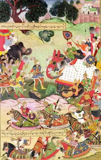 | که آمد فرستادهٔ شاه هند | ابابیل و چتر و سواران سند | |