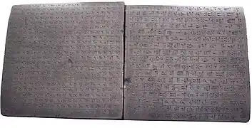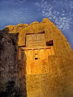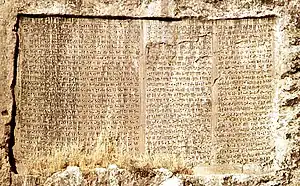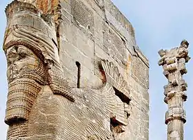 سنگنبشته کاخ دروازه کشورها در دیوارههای کاخ دروازه کشورها، بالای چهار پیکر بزرگ حیوانات و در تخت جمشید قرار دارد. این کتیبهها در ۴ سری و در ۳ زبان در این کاخ نقر شدهاست. چیدمان کتیبهها به نحوی است که در هر ۴ سری، متن بابلی به سمت اندرون کاخ و بنا، متن پارسی در میان دو زبان دیگر و متن ایلامی در جهت خارجی و بیرونی دروازه حک شدهاست. ستایش اهورامزدا، معرفی خشایارشا و خاندان او، ثبت ساخت و تکمیل کاخ دروازه کشورها، موضوع کتیبهها را تشکیل میدهد. این سنگنبشتهها به فرمان خشایارشا ایجاد شدهاست.[48][49]