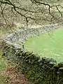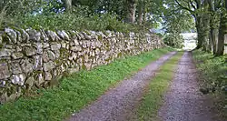 Dry stone wall near a chambered cairn below Cuff Hill in اسکاتلند