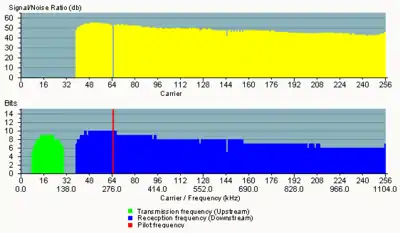 ADSL از باند ۱٫۱ مگا هرتز و ADSL۲+ از باند ۲٫۲ مگاهرتز استفاده میکنند.