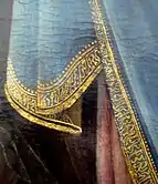 Right image: At the top, detail of the Virgin's mantle hem in Antonio Vivarini's Saint Louis de Toulouse, 1450. At the bottom, detail of Virgin's mantle hem in Jacopo Bellini's Virgin of Humility, 1440. Louvre Museum.