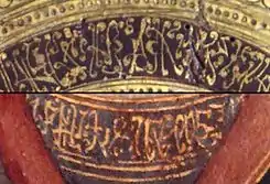 Left image: Pseudo-Kufic script on the hem of the Virgin's mantle in Filippo Lippi's 1438 Pala Barbadori. Louvre Museum.