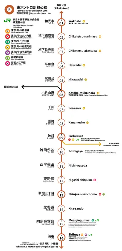 مشارکتکنندگان ویکیپدیا. «東京地下鉄副都心線». در دانشنامهٔ ویکیپدیای ژاپنی، بازبینیشده در ۲۰۱۱-۱-۱۹.