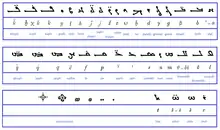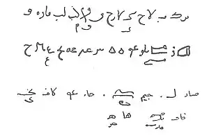 ![]() خط منانی (مانوی) بازسازیشده توسط ابن ندیم در الفهرست | |