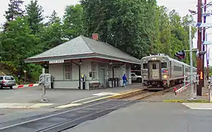 ![]() A Hoboken Terminal-bound train at River Edge. | |