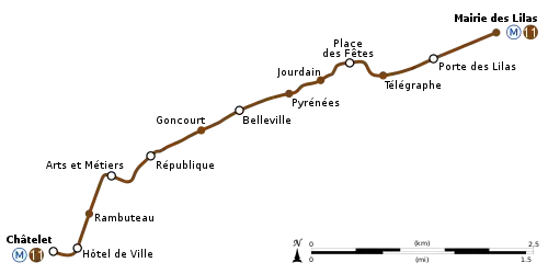 | پایانه | Châtelet (Paris Métro) Mairie des Lilas (Paris Métro) |