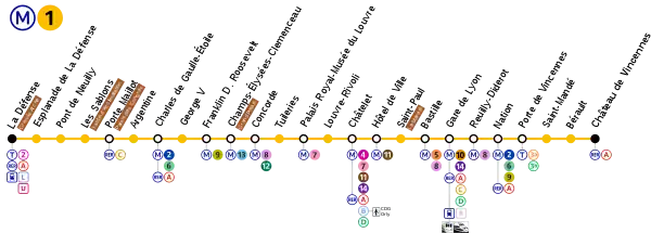 نقشۀ ایستگاههای خط ۱ متروی پاریس