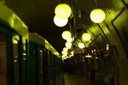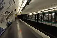 ![]() MP 89CC stock train arriving at Denfert-Rochereau. | |