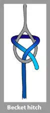 | گرهپیچ بَندینَک | Becket hitch | Any hitch that is made on an eye loop, i.e. on a becket. | ![]() |