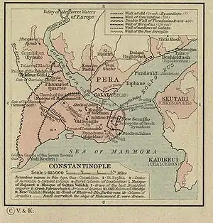 نقشه شهر قسطنطنیه و خلقیدون در منطقهٔ جنوب غربی آن، برای بزرگتر دیدن عکس بر روی آن کلیک کنید.