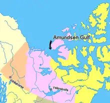 - "Amundsen Gulf." Encyclopædia Britannica. Encyclopædia Britannica Online. Encyclopædia Britannica, 2011. Web. بازدید در تاریخ ۵ مه ۲۰۱۱.