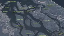 به دلیل وجود جزیرههای سدی در این ناحیه، خلیج مورتون را میتوان یک تالاب داخلی محسوب کرد چرا که ارتفاع آب آن از دریاهای مجاور کمتر است.[2]