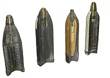 - خرج پرتاب اولیه یا چاشنی ته فشنگی: که شبیه گلولههای تفنگهای شکاری است و در ته خمپاره و وسط پره ی کنترل قرار دارد.