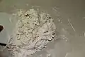 ۲. مواد ابتدا با لیسه خمیر یا دست مخلوط شده و سپس تا حدی که کشدار نشود، ورز داده میشود.