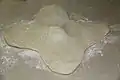 ۲. خمیر به اندازه سه برابر کرهٔ میانی باز میشود.