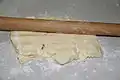 ۱. کره بر روی سطحی که آرد بر آن پاشیده شده با وردنه به صورت مسطح درمیآید.