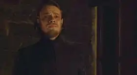 ![]() تیان گریجوی باوحشت نظارهگر صحنهٔ تجاوز رمزی بولتون به سانسا استارک است. صحنهای که مناقشهآمیز بود و حرفوحدیثهایی را در پی داشت. | |
