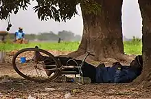 خواب نیمروزی در پای درخت انبه در آواگادوگو بورکینافاسو.