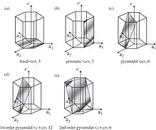 HCP بریلیوم حالتهای مختلف تغییر شکل ازجمله لغزش در صفحههای پایه، هرمی و منشوری، لغزش متقابل و دوقطبیها (basal, prismatic, pyramidal, cross lips, twining) میباشد. البته صفحههای اولیه لغزش صفحههای پایه هستند (نسبت محوری برای انتخاب سیستم لغزش مناسب مهم است).