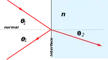 برای یک زاویهٔ تابش بزرگ، نور بازتاب شده تا حدودی قطبی میشود. دو جهت اصلی قطبش s و p تعریف میشوند. s جهت عمود بر صفحهٔ شامل پرتوهای تابش و بازتابش است و p جهت صفحهٔ موازی با آن.