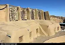 این مسجد جزئی از یک مجموعه معماری شامل رباط، خانقاه، آبانبار و سقابه میباشد که در ۷ کیلومتری روستای فدک واقع است. معماری بنا مشتمل بر تالار وسیعی است که بر فراز دیوار سنگی آن قاب سرتاسری آجری ایجاد شده و کتیبهای آجری به شیوه کوفی در داخل قاب جای داده شدهاست. در حال حاضر بخش جنوبی تالار و ایوان تبدیل به فضای معماری با کاربردی جدید شده اما از آثار و شواهد چنین برمی آید که در سمت شمالی تالارایوانی وجود داشته و در انتهای ایوان محرابی با کتیبه برجسته گچی بودهاست. این بنا در بررسیهای سال ۱۳۶۷ کشف و در همان سال تثبیت و استحکام بخشی شد.