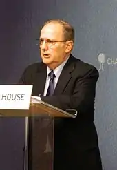 خوان مندز در حال سخنرانی در «چاتمهاوس» در سال ۲۰۱۲ میلادی