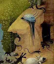 این نقاشی با نقاشی باغ لذت دنیوی از هیرونیموس بوش مقایسه شده. این نقاشی همانند سمت راست بخش چپی نقاشی باغ لذت دنیوی است که از سنگ، بوته و حیوانات کوچک که شبیه نیمرخ هستند، تشکیل شدهاست.[3]