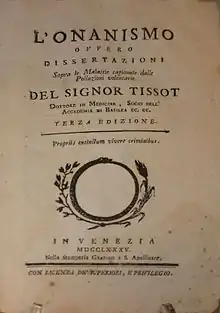 - Onania; or, the heinous sin of self-pollution, and all its frightful consequences, in both sexes, considered, with spiritual and physical advice.