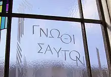 پنجرههای شیشهای در یک ساختمان دولتی در لودویگسهافن آلمان با نوشته ی یونانی γνῶθι εαυτόν "خودت را بشناس"