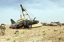 خودرو زرهپوش بازیابی ام۸۸ ارتش آمریکا در حال بالا کشیدن یک میراژ ۲۰۰۰ ساقط شده در افغانستان