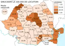 در این کشور از سال ۲۰۰۰ تا کنون، شمار خودکشیها به صورت پایدار در حال کاهش بودهاست. طبق گزارشهای بانک جهانی، میزان مرگومیر ناشی از خودکشی در رومانی از ۱۳٫۲ تن در هر ۱۰۰٬۰۰۰ تن در سال ۲۰۰۰ به ۱۰٫۴ تن در هر ۱۰۰٬۰۰۰ تن در سال ۲۰۱۶ کاهش یافتهاست.[3] بر پایه پژوهشی که توسط سازمان جهانی بهداشت صورت گرفت، مشخص شد که رومانی همراه با چین، در رتبه ۱۰۳ از نظر میزان نرخ بالای خودکشی میان کشورهای جهان قرار میگیرد.[4]
