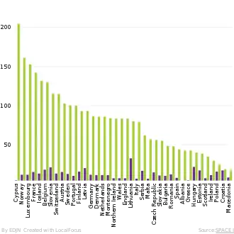 طبق دادههای شورای اروپا، در بالکان نرخ خودکشی در زندانها کمتر از دیگر جاهای اروپا است. در بالکان بهطور متوسط از سال ۲۰۱۱ تا ۲۰۱۵ تنها ۵۳ مورد خودکشی در هر ۱۰۰٬۰۰۰ تن ثبت شده که این رقم در دیگر جاهای اروپا ۸۷ تن در هر ۱۰۰٬۰۰۰ تن است. این به این خاطر است که در کشورهای حوضه بالکان، نرخ زندانی شدن به نسبت بالا است و زندانها بهطور عموم تنها زندانیان آسیبپذیر را در بر نمیگیرند. همچنین نرخ بهرهگیری از زندانی کردن به منظور پیشگیری از وقوع چرم نیز پایین است.[8]