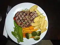 یک استیک گوشت راسته شام. این ممکن است دوره اصلی از یک وعده غذایی است.
