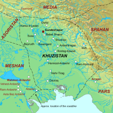 در زمان اشکانیان، خوزستان به الیمائی یک پادشاهی فرعی اشکانی بود شناخته شده بود [4]. که در سال ۲۲۱ قبل از میلاد توسط شاهزاده ایرانی اردشیر بابکان شکست خورد و فتح شد، کسی که بعداً اشکانیان را شکست داد و امپراتوری ساسانیان را تأسیس کرد. [5] [6] خوزستان در زمان دومین شاهنشاه ساسانیان شاپور اول به عنوان یک استان در سنگ نبشته شاپور یکم بر کعبه زرتشت تصدیق شدهاست. در آنجا به خوزستان بعد از پارس و پارتیا اشاره شدهاست که نشاندهندهٔ اهمیت این استان است .[1] کرتیر کاهن زرتشتی نیز به همین ترتیب در کتیبه کرتیر در نقش رجب از این استان یاد میکند. [1] درسال ۲۶۰ میلادی، شاپور اول شهر گندی شاپور را بنیان نهاد، که در دهکده ای به نام پیلاباد واقع در بین شوش و شوشتر تأسیس شد. این شهر که به عنوان محلی برای اسکان اسرای جنگی رومی ساخته شده بود، متعاقباً به یک اقامتگاه تابستانی برای شاهان ساسانیان و پایتخت خوزستان تبدیل شد. [1] پسر و جانشین شاپور اول، هرمز یکم (۲۷۰–۲۷۱) دو شهر هرمیز-اردشیر و رام-هرمیزد را در خوزستان تأسیس کرد. [7] [1] در زمان بهرام دوم (۲۷۴–۲۹۳)، یک موبد در خوزستان شورش کرد و مدت کوتاهی استان را تصرف کرد. [8]