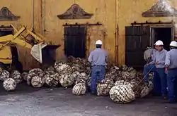 کارگران در حال بارگذاری گیاه آگاوه داخل فر در مکزیک