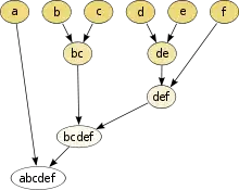 - {b} و {c} با یکدیگر تجمیع میشوند