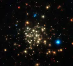 ![]() Arches Cluster of young, massive stars. This image was obtained with NACO اپتیک سازگار system on رصدخانه جنوبی اروپا’s تلسکوپ ویالتی. | |