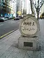 این لوحه در تاریخ ششم تیر ماه (دو)هزار و پانصد و سی و شش شاهنشاهی به وسیلهٔ جناب آقای غلامرضا نیک پی شهردار تهران و جناب آفای "کو چا چان" شهردار سئول پرده برداری گردید.