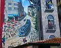 یک نقاشی دیواری که قطار سبک شهری اورشلیم را به تصویر کشیده است.