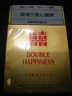مشارکتکنندگان ویکیپدیا. «Double_Happiness_(cigarette)». در دانشنامهٔ ویکیپدیای انگلیسی، بازبینیشده در ۲۲/۳/۲۰۱۸.