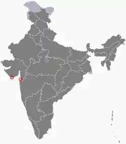 ![]() نقشه دادرا و نگر حویلی و دامان و دیو در هند | |