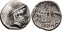![]() سکه دارایان یکم، پشت سکه به زبان آرامی 𐡃𐡀𐡓𐡉𐡅 𐡌𐡋𐡊 - دارا ملک (دارا پادشاه) | |