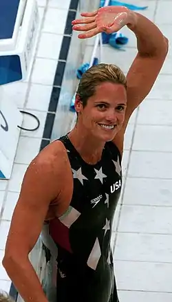 ![]() Torres waves to the crowd after winning the silver medal in the 50-meter freestyle at the بازیهای المپیک تابستانی ۲۰۰۸. | ||||||||||||||||||||||||||||||||||||||||||||||||||||||||||||||||||||||